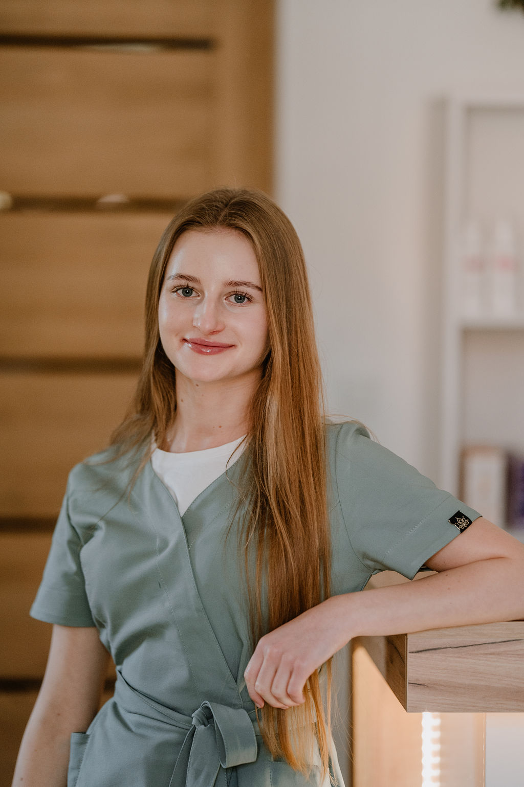 Uzyskała tytuł technika usług kosmetycznych w Pomorskiej Szkole Medycznej w Sztumie, wciąż kontynuuje naukę na kierunku masażysta w tej samej szkole. W naszym gabinecie wykonuje wszystkie rodzaje masażu: nasz firmowy masaż ciała i pleców, masaż twarzy, szyi i dekoltu KobidoAroma z rytuałem aromaterapeutycznym oraz jako jedyna osoba w Sztumie uzyskała uprawnienia do wykonywania Maderoterapii® , czyli antycellulitowego masażu kolumbijskiego drewnianymi wałkami. Dodatkowo Agata wykonuje też zabiegi na twarz (wszystkie oprócz mezoterapii igłowej) a także dba o Wasze brwi.